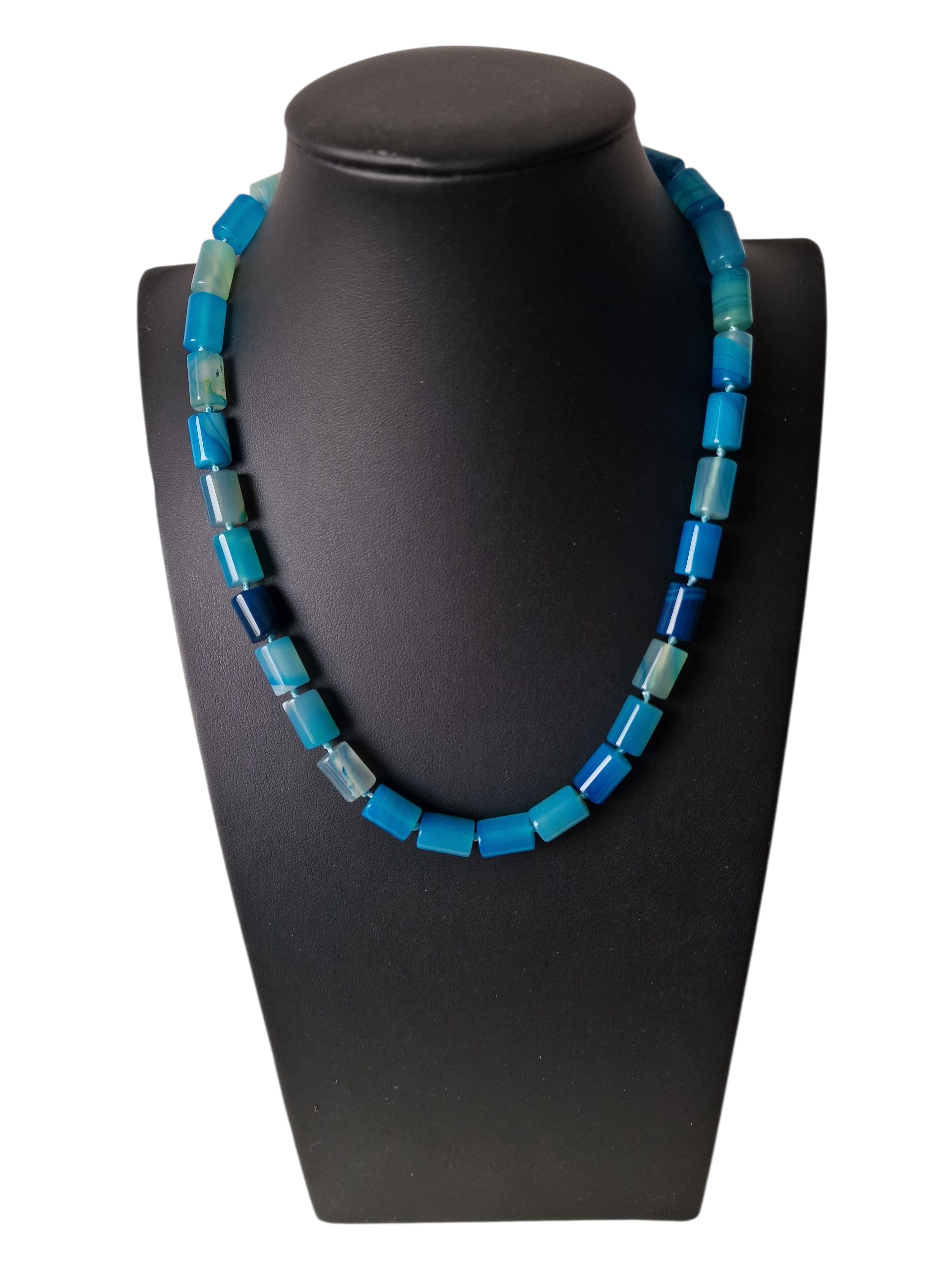 Špetka etnických módních trendů v podobě náhrdelníku z dokonale zbarvených modrých brazilských achátů.