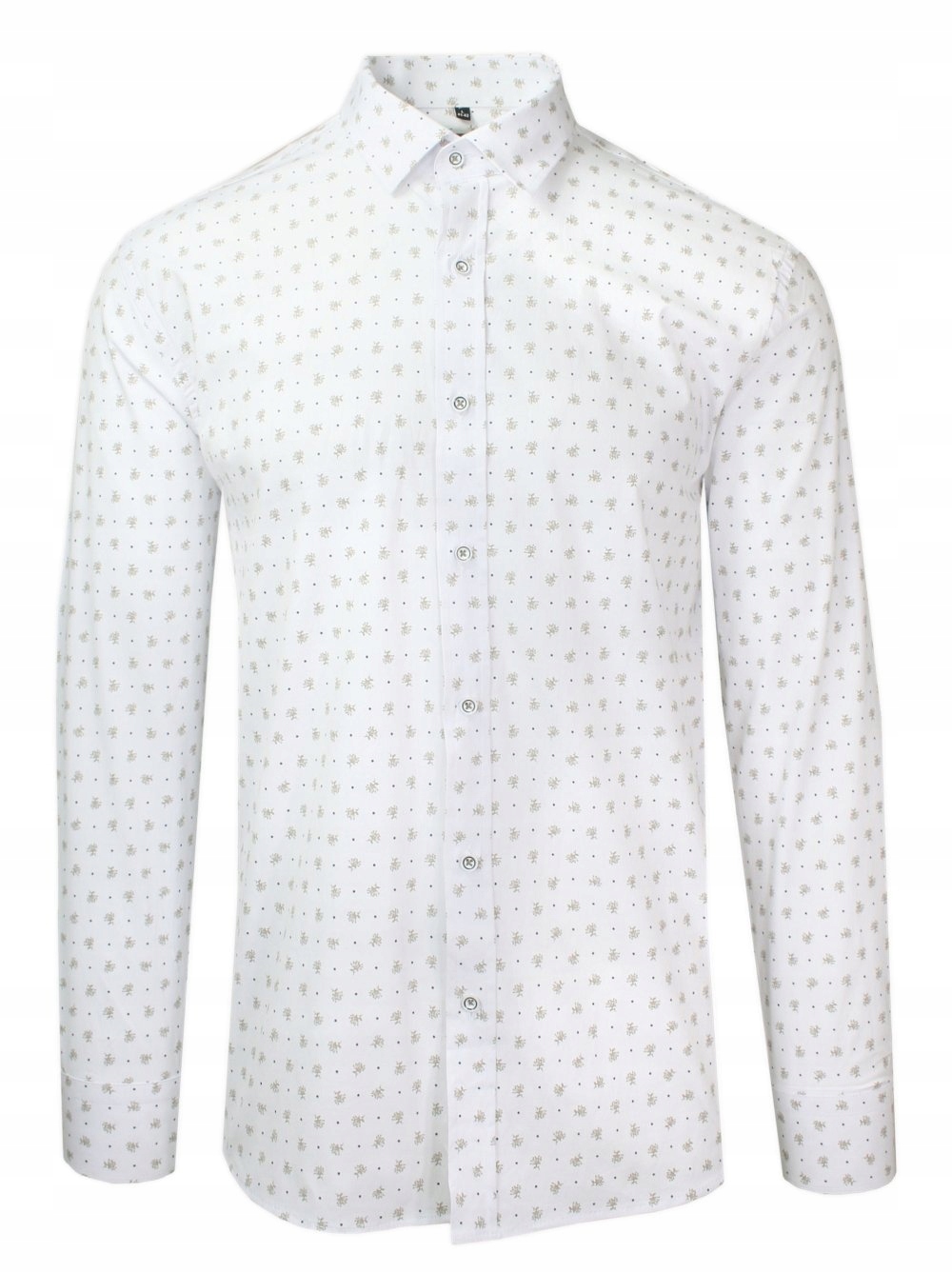 Košile s dlouhým rukávem, bílá s béžovým vzorem, jednoduchý Střih, bavlněná – VICTORIO