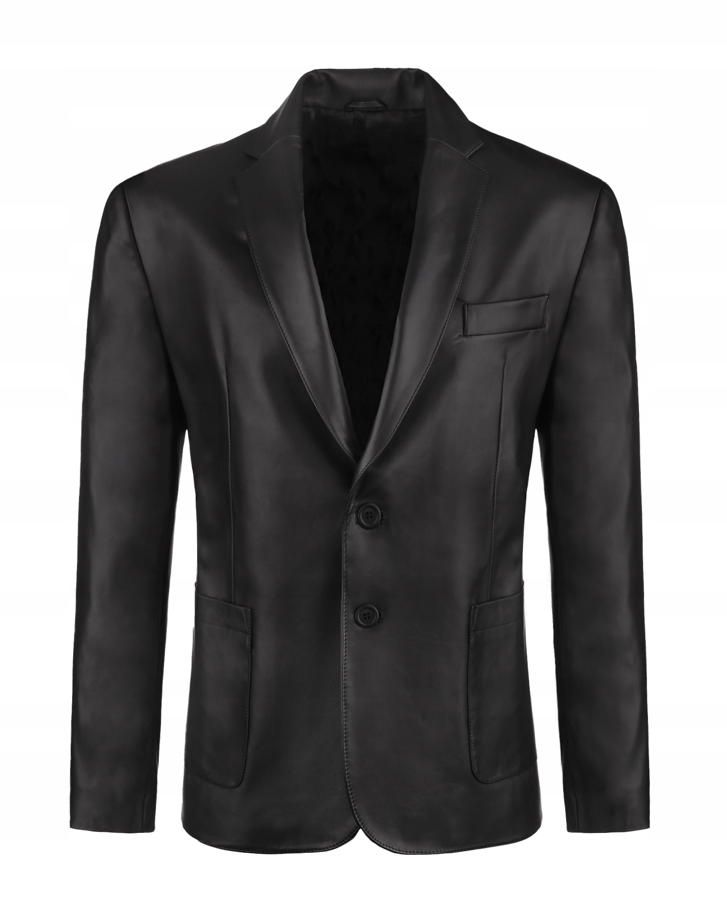Pánská kožená sako vyniká svou přiléhavou formou (slim fit). Vyrobena z vysoce kvalitní matné italské jehněčí kůže v hlubokém odstínu černé, kombinuje nadčasový vzhled s vynikajícím komfortem při nošení. Přírodní kůže je měkká, odolná a krásně sedí na postavě. Vytříbený střih saka a jemné stebnování zdůrazňují mužskou postavu a dodávají jí elegantní charakter. Pečlivě vybrané knoflíky zdůrazňují vysokou kvalitu zpracování a dodávají celku jedinečný styl. Model je jednořadý, zapíná se na 2 knoflíky, má otevřené klopy, brustaše a dva rozparky na zadní straně, což zajišťuje volnost pohybu a klasický vzhled. Vnitřek saka je zakončen podšívkou a jeho funkčnost zvyšují dvě zasouvací vnější kapsy a tři vnitřní kapsy, z toho jedna zapínaná na zip – ideální pro telefon, peněženku nebo jiné drobné doplňky. Díky absenci dodatečného zateplení se kožená sako skvěle hodí po celý rok – jak v každodenních stylizacích, tak i ve formálnějších sestavách. Výrobek byl navržen a ušitý v Polsku.