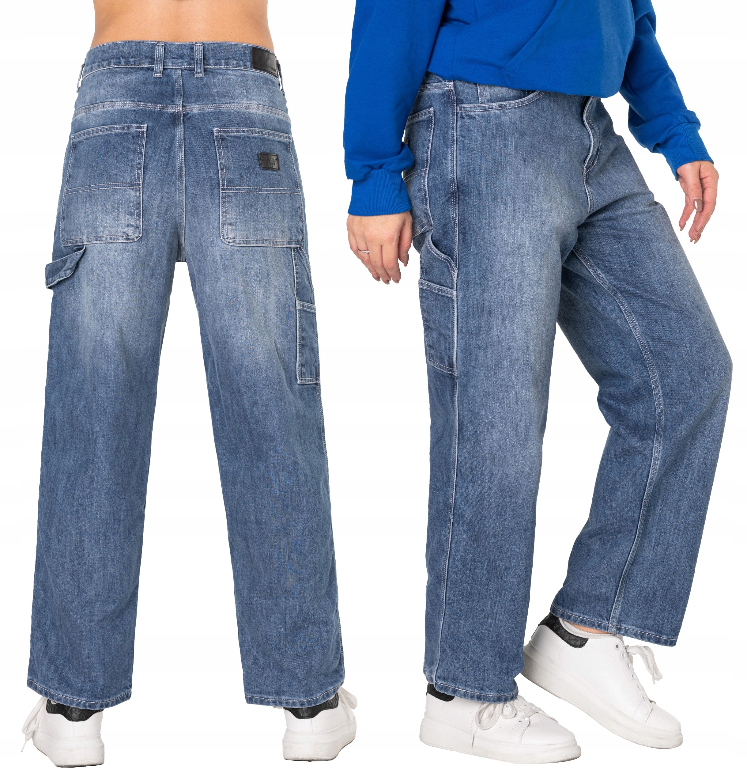 Džíny s širokou, volnou nohavicí typu švédský relaxed fit v módním pracovním stylu