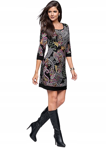 Dámské šaty se 3/4 rukávy XS VENUS kulatý výstřih 94 cm dlouhé 3/4 rukáv Materiál: 60% polyester, 40% elastane Prát ve studené vodě. Nebělit. Sušit volně pověšené, ne v sušičce. Barva: černávelikost: XS