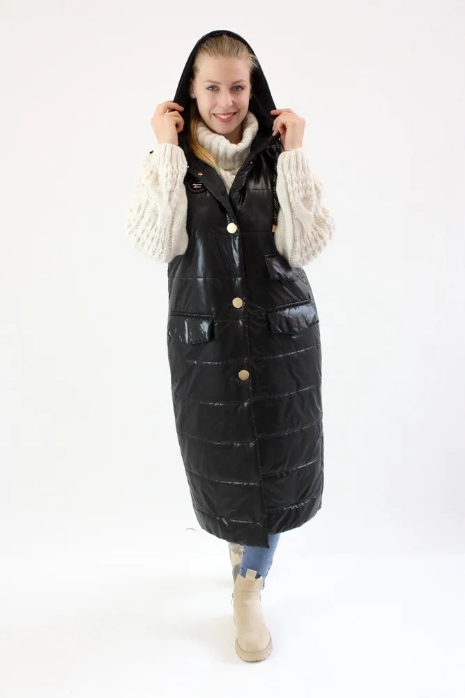 Dlouhá vesta s kapucí Černá 50