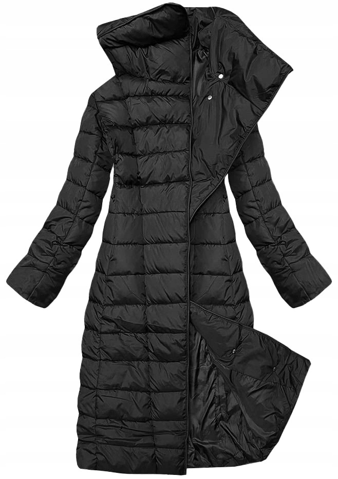 Dlouhá zimní bunda s límcem černá (my017) – XL (42)