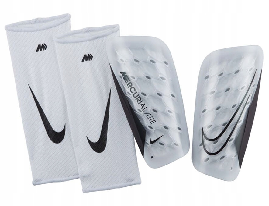 Chrániče Nike – vynikající kvalita – vyrobené podle nejnovějších technologií společnosti Nike. Na chráničích je nápis Mercurial – zobrazen na fotografii.