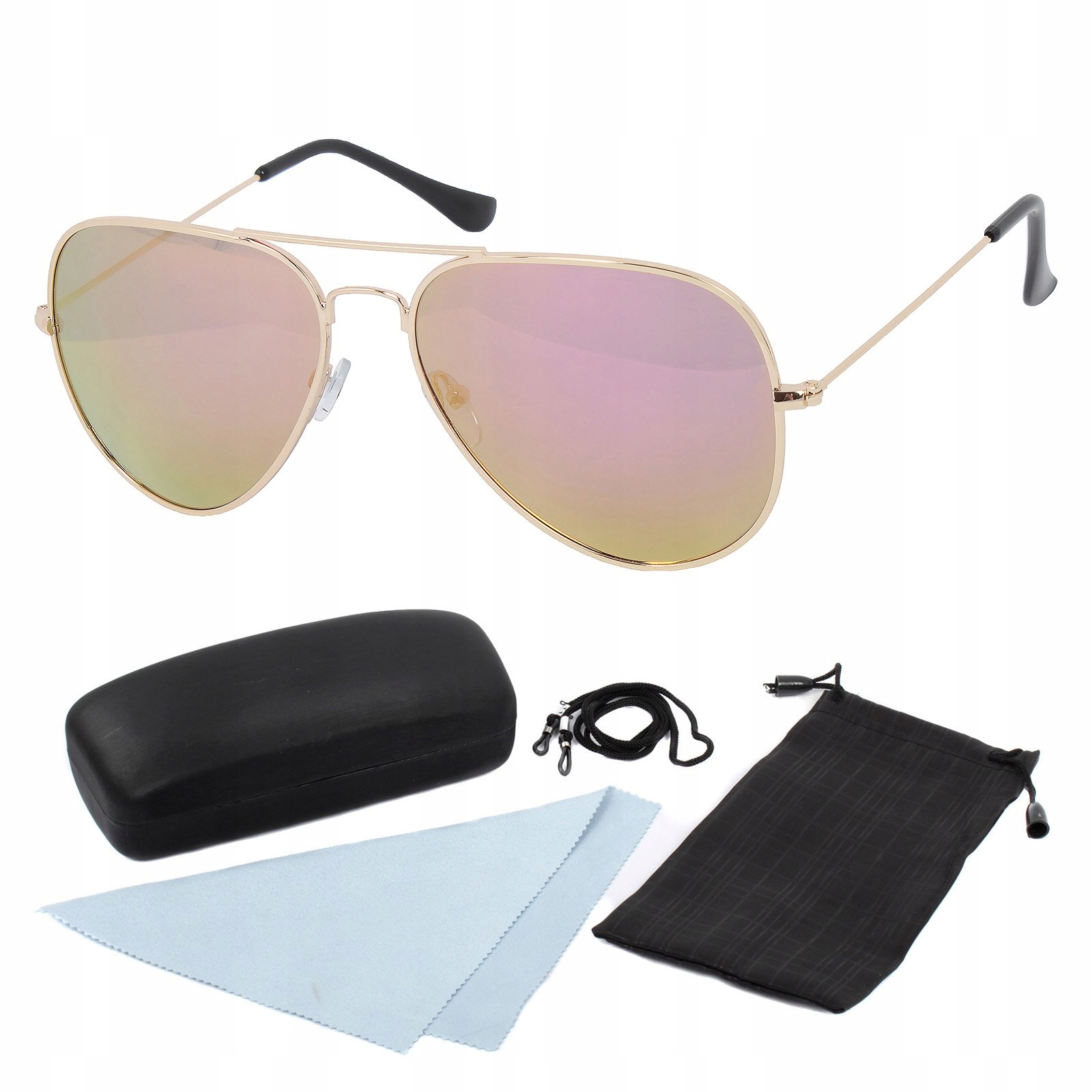 Brýle, tvrdé pouzdro a fíbr pro čištění skel.