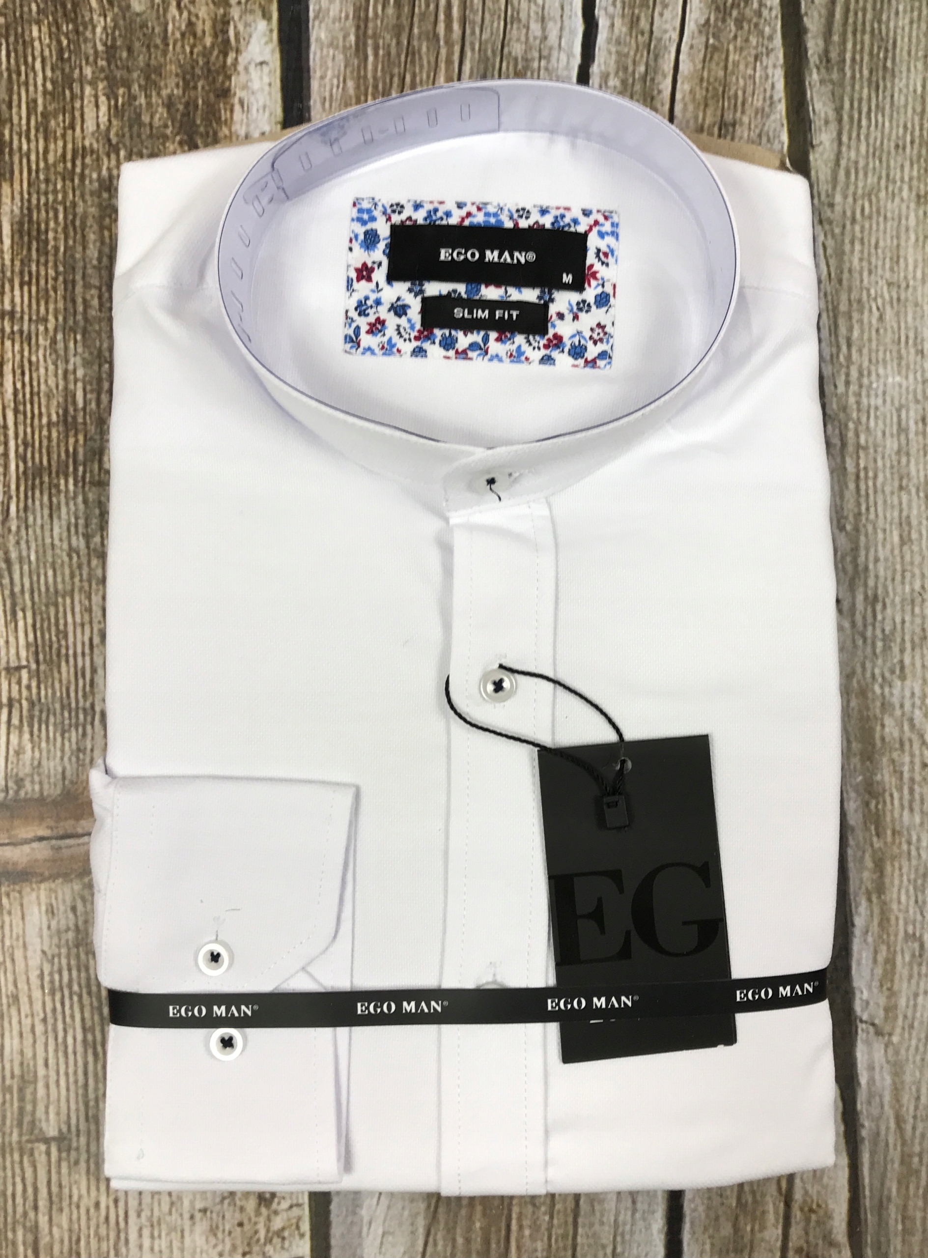 Košile slim fit se stojáčkem bílá EGO01 – 5XL