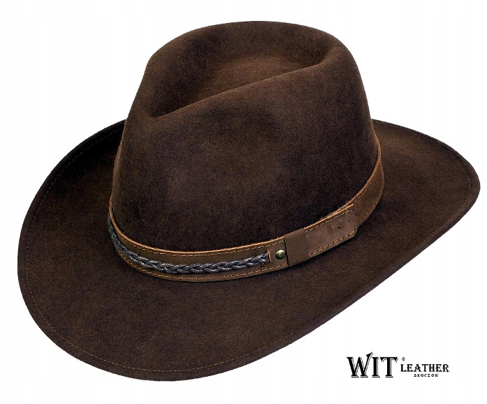 Originální kovbojský klobouk „Jukon“ je ručně vyroben ze 100% ovčí vlny. Dokončen koženým páskem s úzkým pletencem, v okraji klobouku byl všitý drát, který umožňuje libovolné jeho tvarování. Odolný vůči povětrnostním vlivům, Water Repellent.