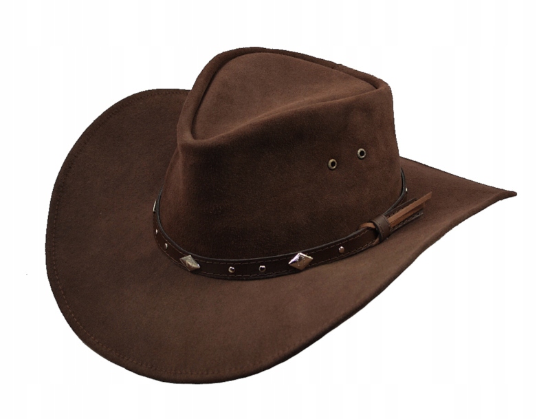 Kovbojský kožený klobouk model Indianapolis byl vyroben naší firmou ve Skoczowě z velurové hovězí kůže v černé barvě. Klobouk typu western byl opásán koženým černým páskem spolu s ozdobami. V klobouku byly na každé straně vytvořeny dva větrací otvory. Na přání zákazníka vyrábíme klobouk spolu s koženým řemínkem a zarážkou pod bradu. V obvodu kruhového objezdu je všitý drát, díky kterému lze jeho tvar libovolně profilovat.
