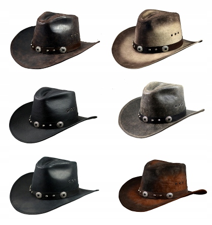 Kožený kovbojský klobouk model Melbourne byl vyroben naší firmou ve Skoczowě z hovězí kůže v různých barvách. Klobouk typu western byl obepnut koženým páskem spolu s ozdobami (concho). V klobouku byly vytvořeny tři větrací otvory. Na přání zákazníka vyrábíme klobouk spolu s koženým řemínkem a zarážkou pod bradu. V obvodu kruhového objezdu je všitý drát, díky kterému lze jeho tvar libovolně profilovat.