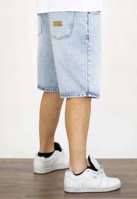 Kraťasy Lucky Dice Dice světle modré. Džínové šortky pravidelného střihu s vyšívaným logem a oděrkami. Mají pět kapes. Zapínání na zip a knoflík