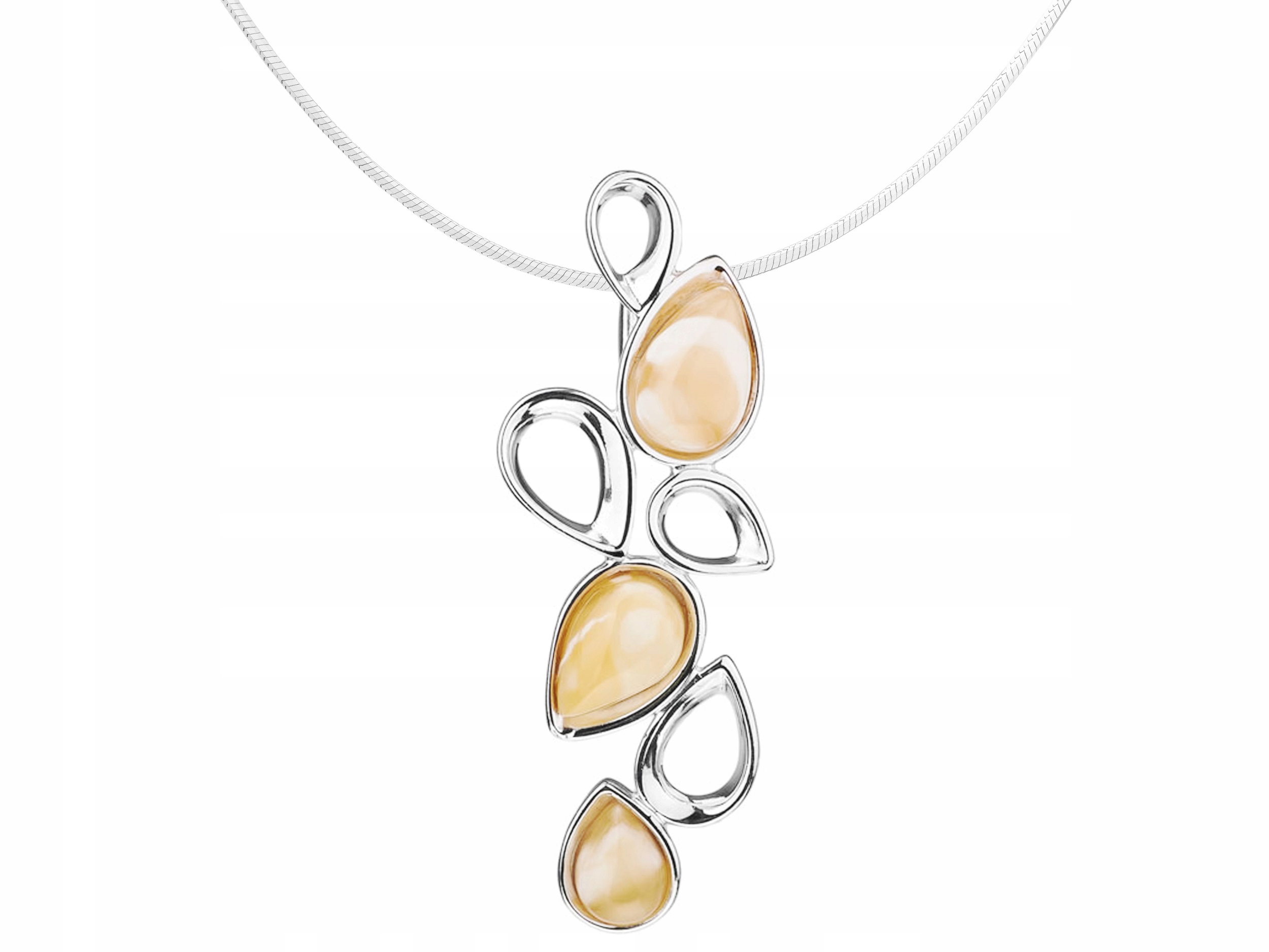 Nabízíme velký náhrdelník vyrobený z bezniklového stříbra ryzosti 925, zdobený přírodním baltským jantarem.