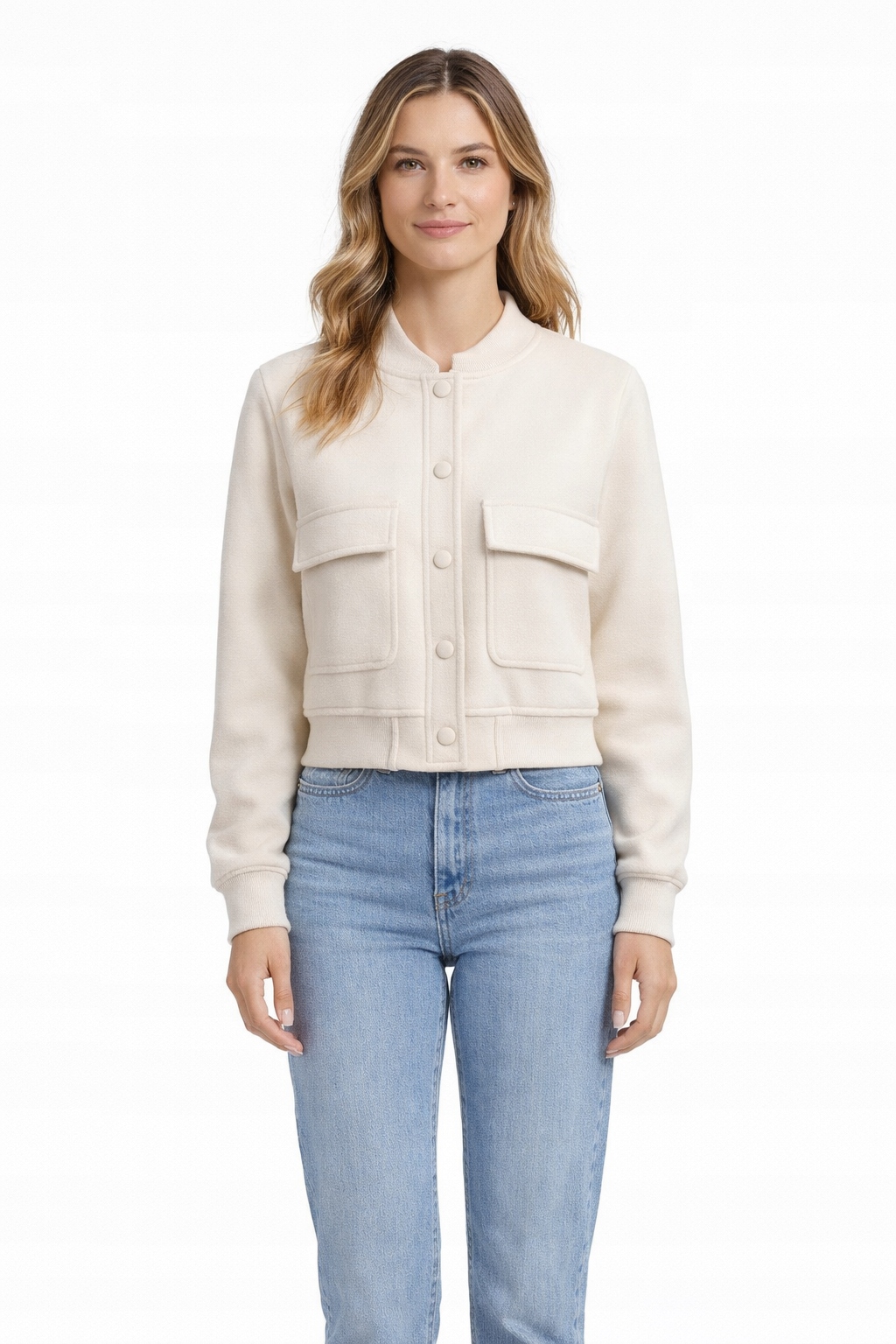 KRÉMOVÁ BOMBER BUNDA S KAPSAMI A KNOFLÍKY