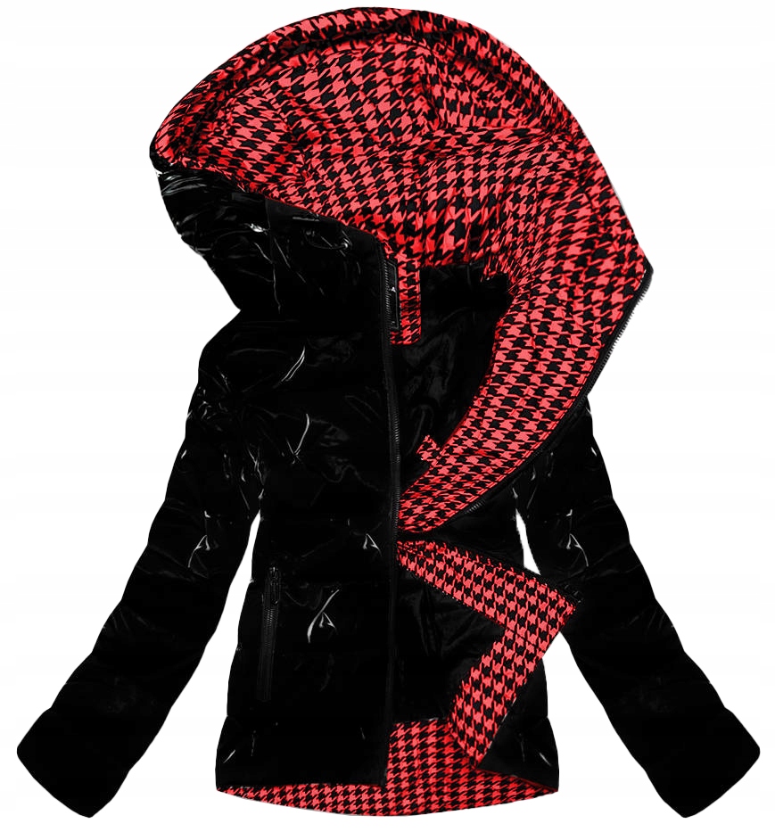 Dámská prošívaná bunda s vzorovanou podšívkou černá (w707) – XXL (44)