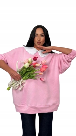 Mikina má elegantní bílý límec, který jí dodává šmrnc.