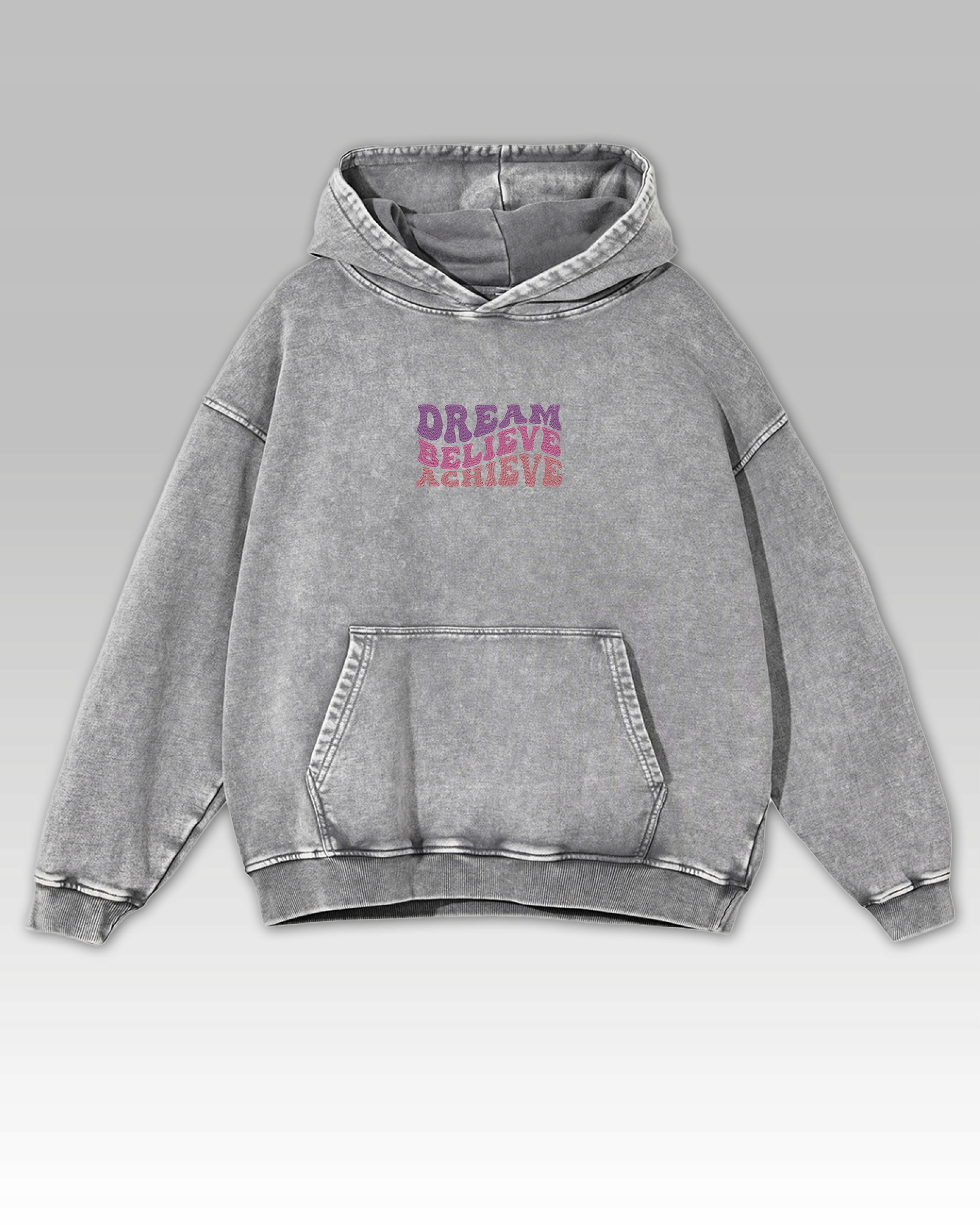 Oversize mikina s kapucí „Dream Believe Achieve“ je ideální volbou pro lidi, kteří sázejí na pohodlí a inspirativní poselství. Vyrobeno z vysoce kvalitních materiálů, zajišťuje pohodlí při nošení a trvanlivost. Vyšívaný nápis „Dream Believe Achieve“ ve stylové kombinaci barev je nejen módním doplňkem, ale také motivací k činnosti každý den. Volný, oversized střih , praktická kapuce a klokanka kapsa dělají mikina ideální volbu pro každodenní ležérní i streetwear styling. Zdůrazněte svůj individuální styl a ukažte, že věříte ve své sny!