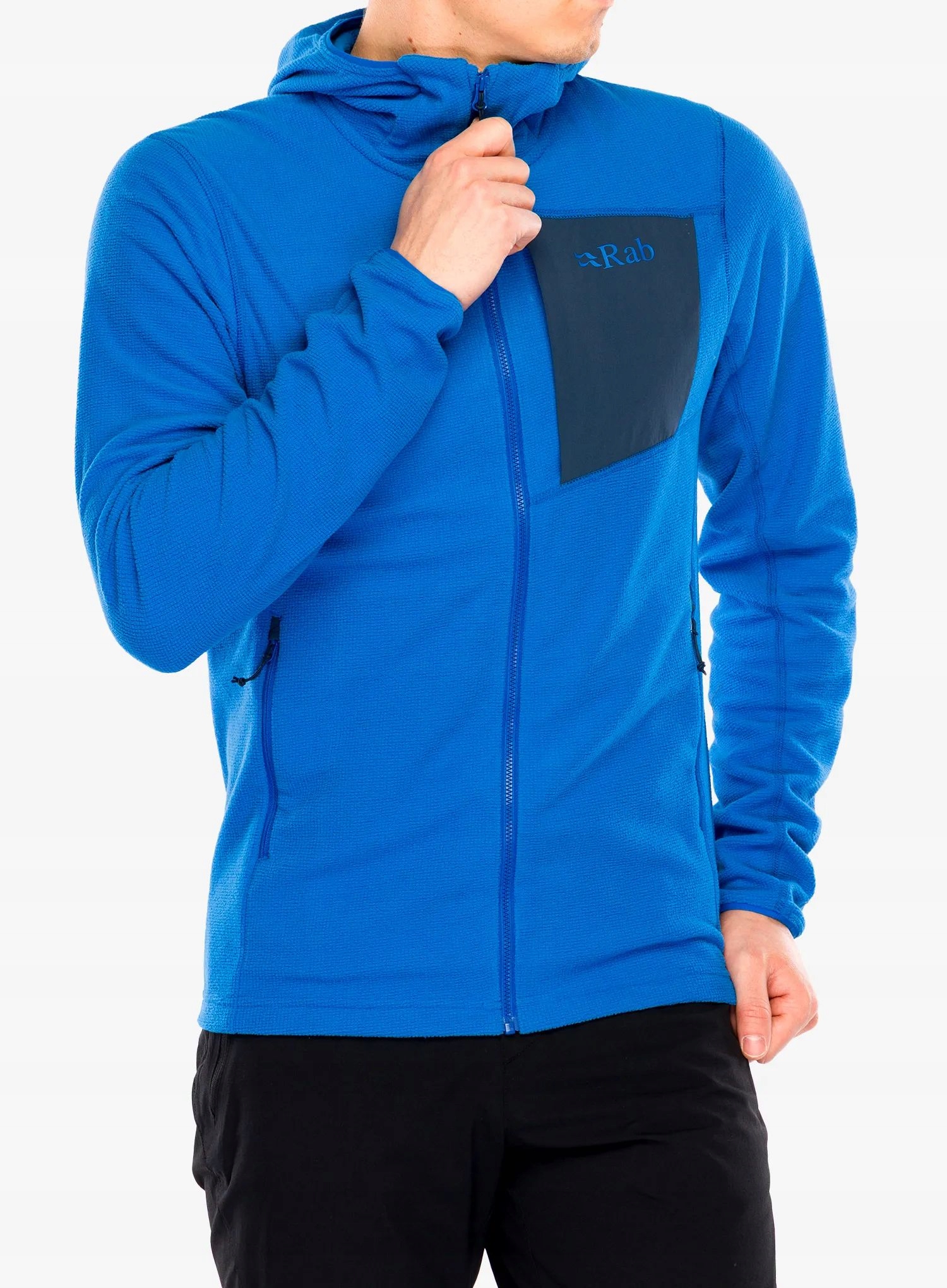 Mikina s kapucí Rab Tecton Hood – maya blue je všestranný model, který lze použít jako střední vrstvu oblečení nebo jako přímou vnější vrstvu v mírně teplejších dnech. Jejím úkolem je postarat se o tepelný komfort během řady aktivit v terénu.