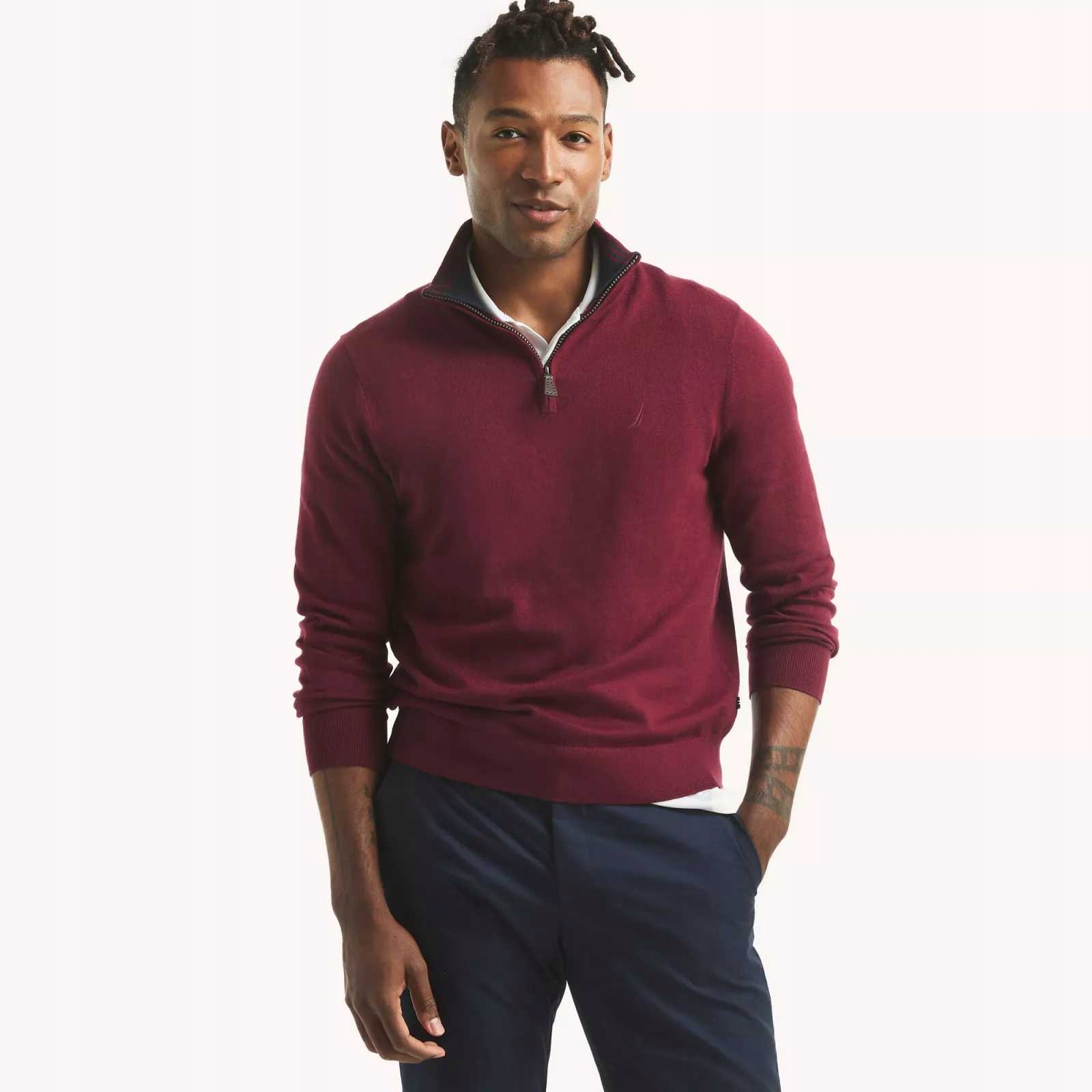 NAUTICA pánský svetr NAVTECH QUARTER vínový L