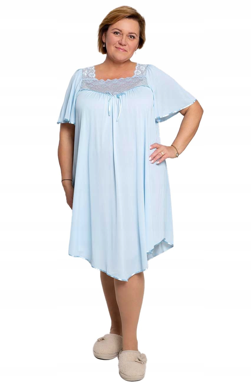Elegantní košile noční plus size v odstínu modré barvy kombinuje pohodlí a ženský půvab. Vyrobeno z vysoce kvalitního, prodyšného a lehkého materiálu typu vistex – viskózového hedvábí – zajišťuje příjemný kontakt s pokožkou a pohodlí po celou noc.