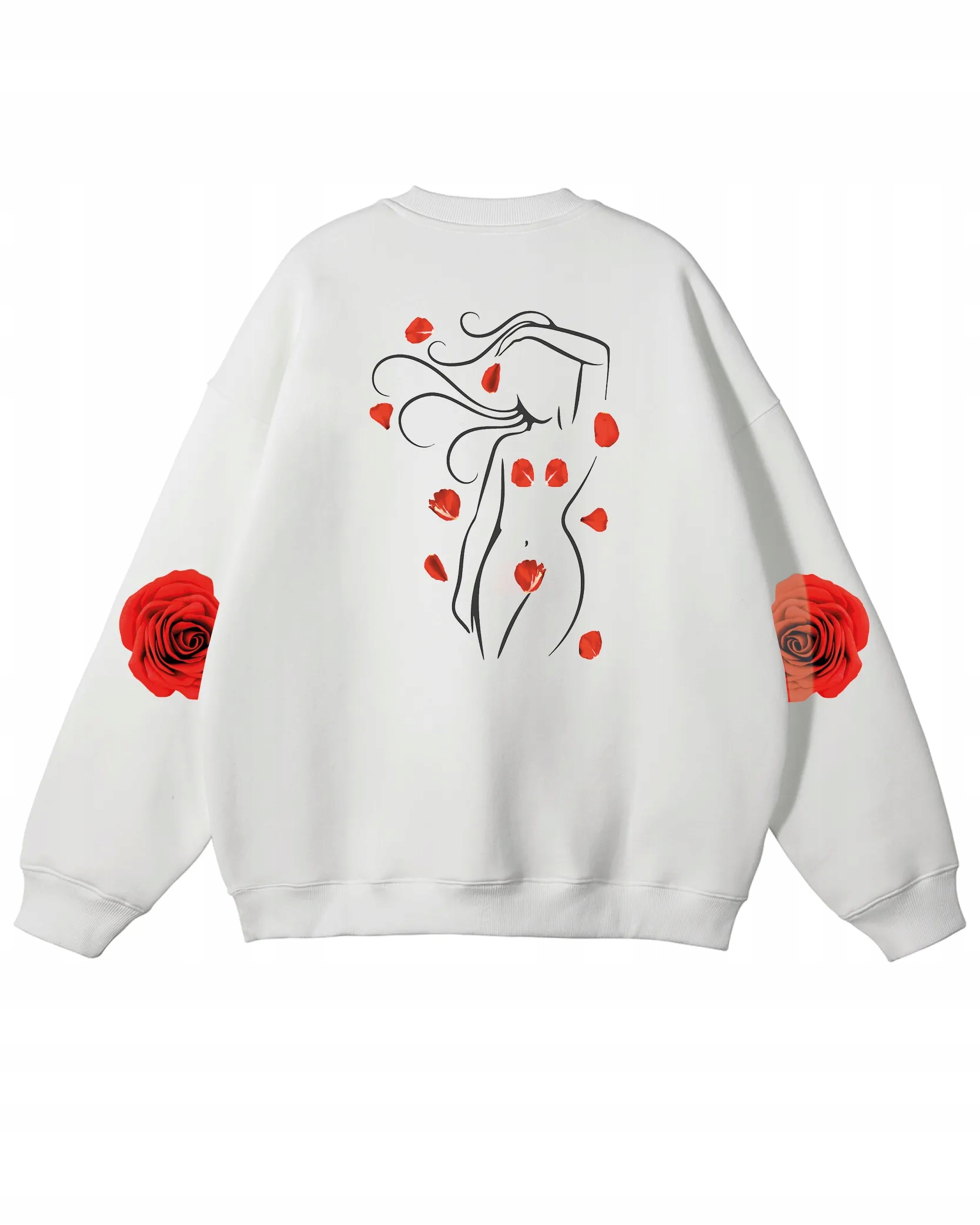 Tato jedinečná oversize mikina je kombinací umění a romantiky v jednom projektu. Jemný obrys ženské postavy obklopený červenými okvětními lístky růže vytváří neobvyklý umělecký potisk. Květinové akcenty na rukávech jí dodávají ještě větší kouzlo a měkký a příjemný materiál zajišťuje pohodlí při nošení po celý dzień.To nejen součást šatníku – je to manifest ženské síly, jemnosti a krásy. Ideální nabídka pro lidi, kteří milují módu s poselstvím a chtějí zdůraznit svou jedinečnost každý den. Zdůrazněte svou individualitu a vyberte si mikinu, která říká víc než jen slova!