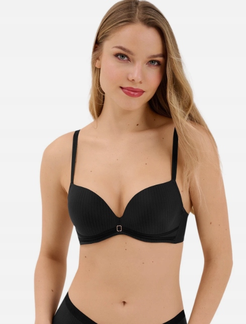 Podprsenka Lisca Laura 020326 02 je smyslný model push-up s kosticemi, který efektně zvedá a opticky zvětšuje poprsí a dodává mu plnější a svůdný tvar. Pečlivě tvarované košíčky zajišťují stabilní oporu a jejich sametová podšívka zaručuje výjimečnou měkkost a potěšení na dotek a zvyšuje tak komfort nošení po celý den. Tenké proužky a decentní lem dodávají celku moderní, stylový charakter a zdůrazňují eleganci modelu. Díky hladkému povrchu zůstává podprsenka neviditelná i pod přiléhavým oblečením. Regulovatelné ramínka, která jsou ve větších velikostech širší, umožňují dokonalé přizpůsobení postavě a zajišťují lepší podporu a pohodlí při používání.