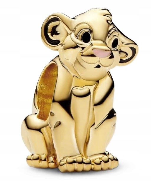 Charms Pandora Simba Lví král Disney 763376C01 je pozlacená ozdoba s obrázkem malého Simby, symbolizující odvahu, nevinnost a rodinné vazby. .