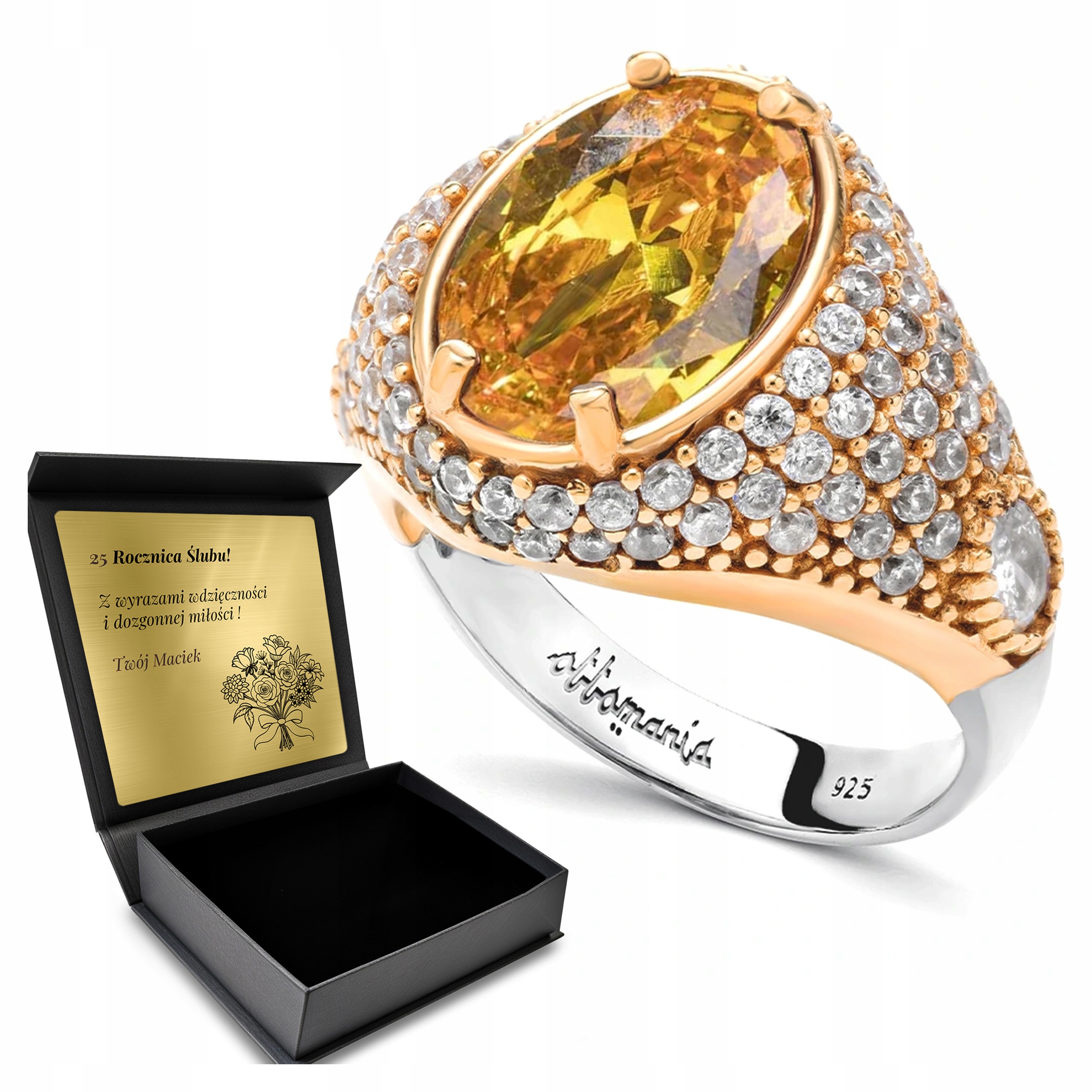 PRSTÝNEK 925 ZIRKONY A CITRONY, ŠPERKY PRO ŽENY + GRAVÍROVÁNÍ