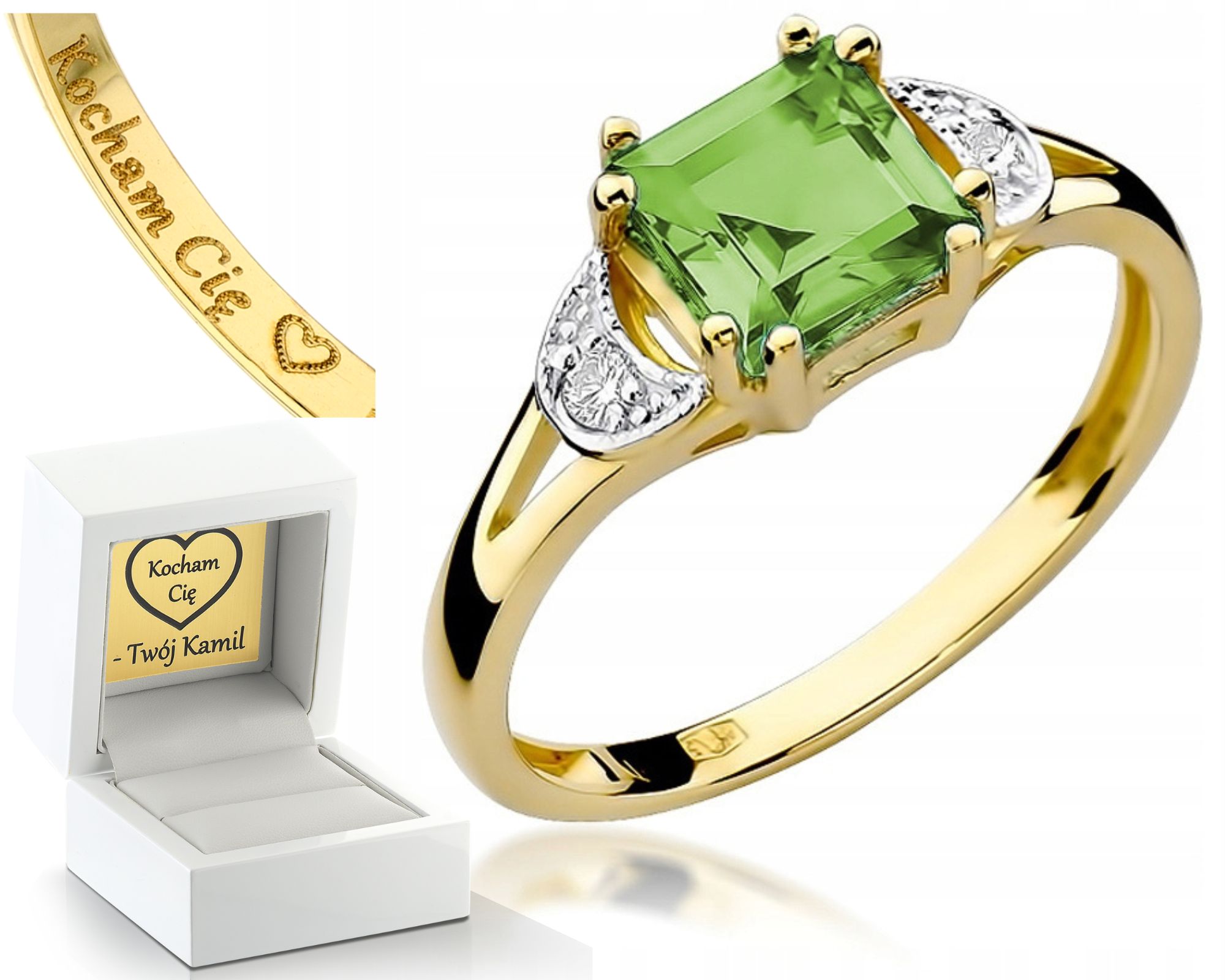 PRSTÝNEK OLIVÍN A BRILIANTY GRAVÍROVÁNÍ DÁREK