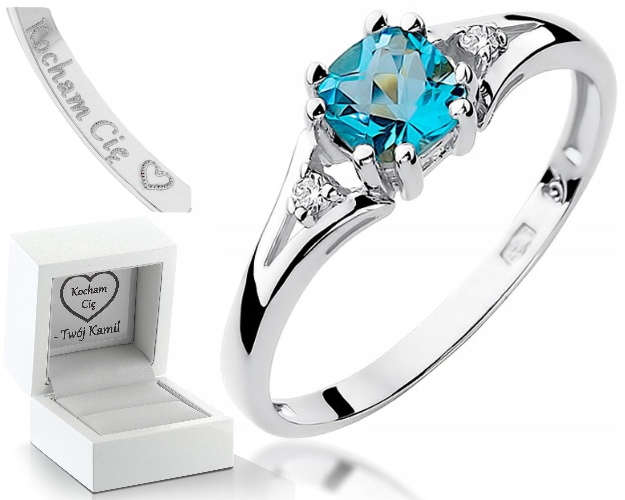 PRSTÝNEK S TOPAZEM BÍLÉ ZLATO GRAVÍROVÁNÍ DÁREK