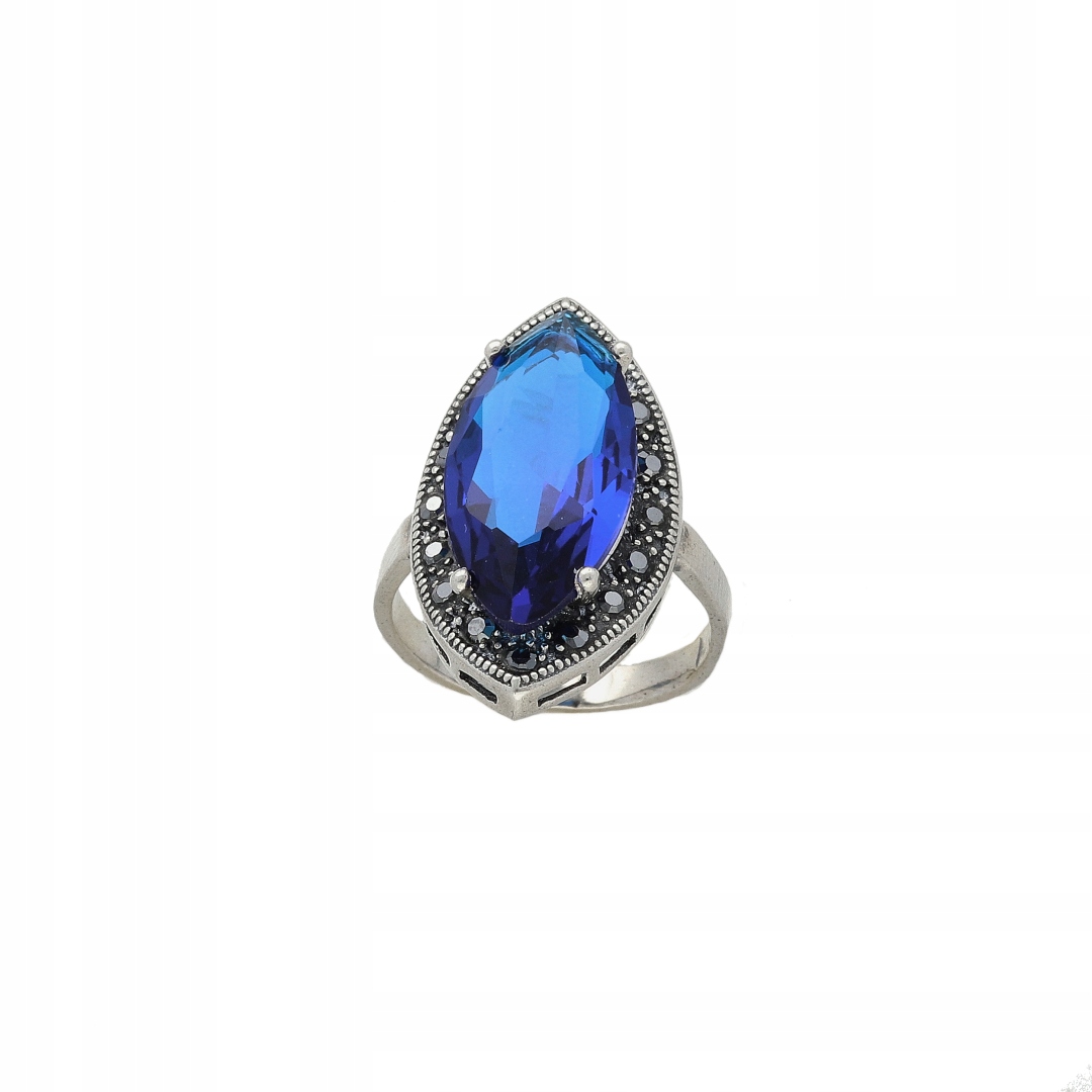 Materiál: stříbro. Vzorek stříbra: 925. Kameny: syntetický safír, markýzy. Hmotnost: cca 4. 60 g. Rozměry prvku: 2. 7 x 1. 5 cm. Rozměry kamene: 2. 0 x 1. 0 cm. Šířka kolejnice: 0. 3 cm. Ke každé objednávce přikládáme elegantní krabička a dárkovou tašku!