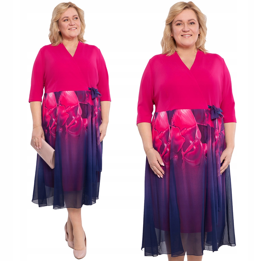 Výjimečné šaty s midi délkou a velmi ženským střihem jsou ideální volbou pro dámy, které milují živé barvy. Obálkový výstřih se hladce přizpůsobí poprsí a opticky prodlužuje krk. Vzdušný spodní lem s květinovým vzorem dodává siluetě lehkost a funkční podšívka zajišťuje pohodlné nošení i po dlouhou dobu. Zavazování na přední straně kromě dekorativní funkce umožňuje lepší přizpůsobení šatů v pase, díky čemuž je silueta pěkně zdůrazněna. Klasický 3/4 rukáv dodává šatům nadčasový charakter a hodí se pro mnoho příležitostí. Materiál je příjemný na dotek, snadno se udržuje a krásně vypadá při pohybu.