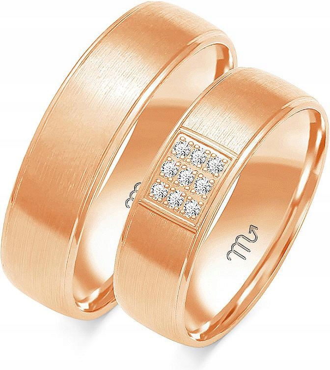 Růžové zlaté moderní snubní prsteny 585, velikost 8 9 10, moderní model gravírování