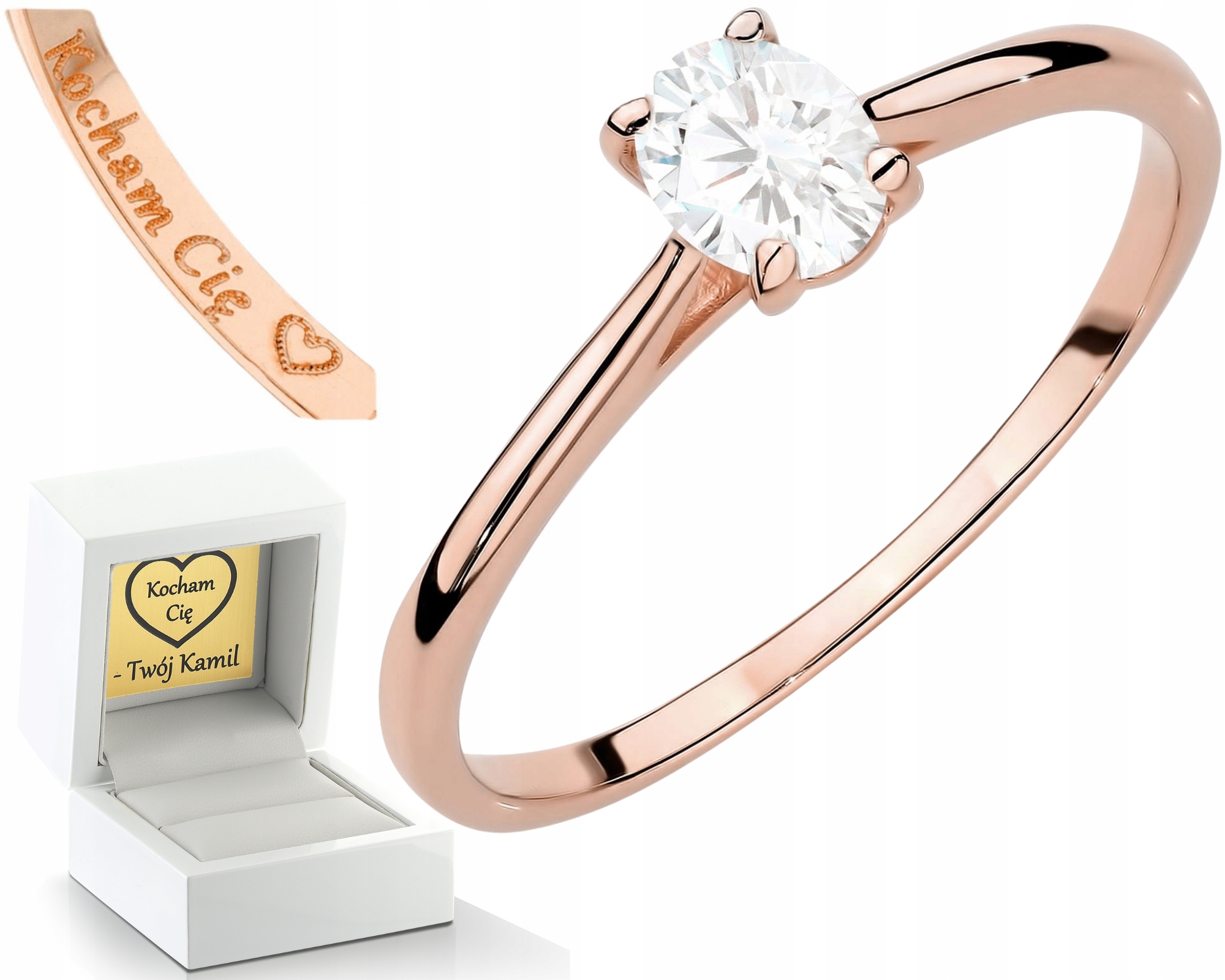 RŮŽOVÉ ZLATO PRSTÝNEK LABORATORNÍ BRILIANT KLASIKA DRŤ 585 DÁREK