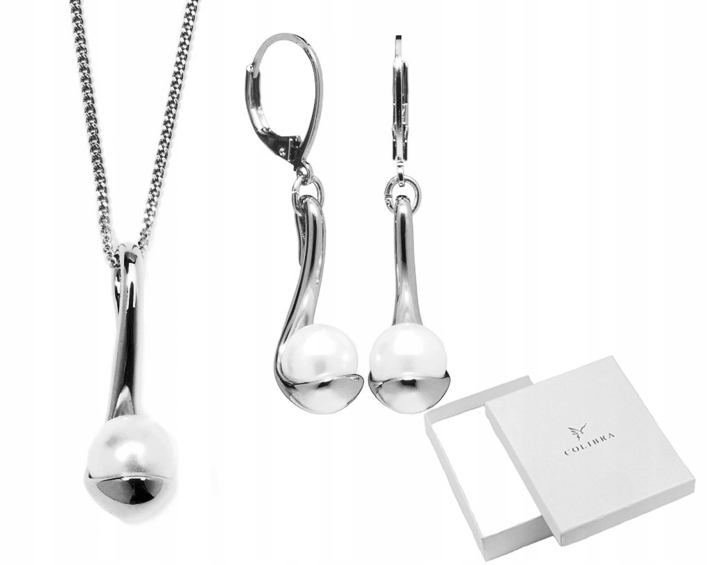 Mimořádně ženský komplet šperků s perlou vyrobený z trvale postříbřené šperkařské slitiny, v souladu s nejvyšším zlatnickým uměním a pozorností k detailům,má originální etikety.