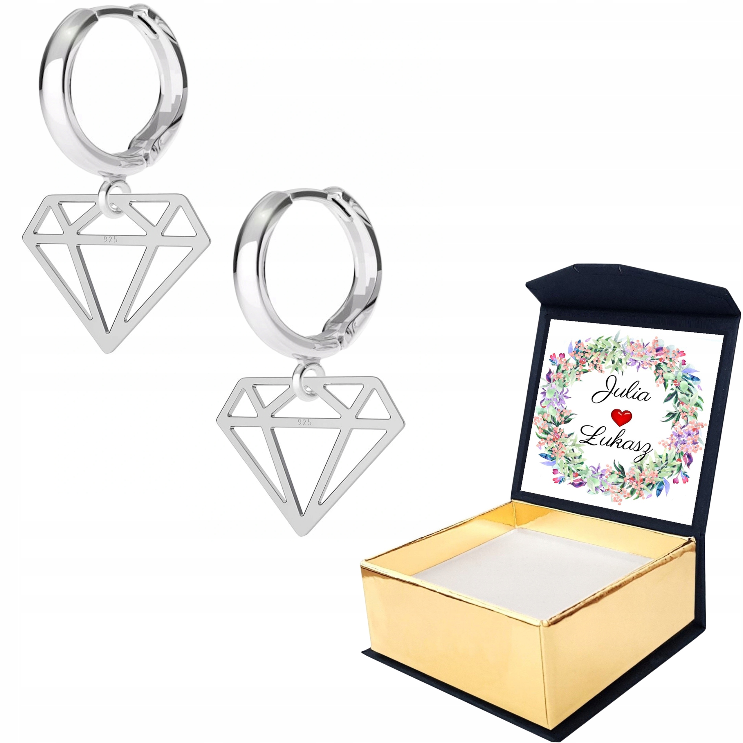 Náušnice Diamant Stříbrné + krabička s vlastním potiskem