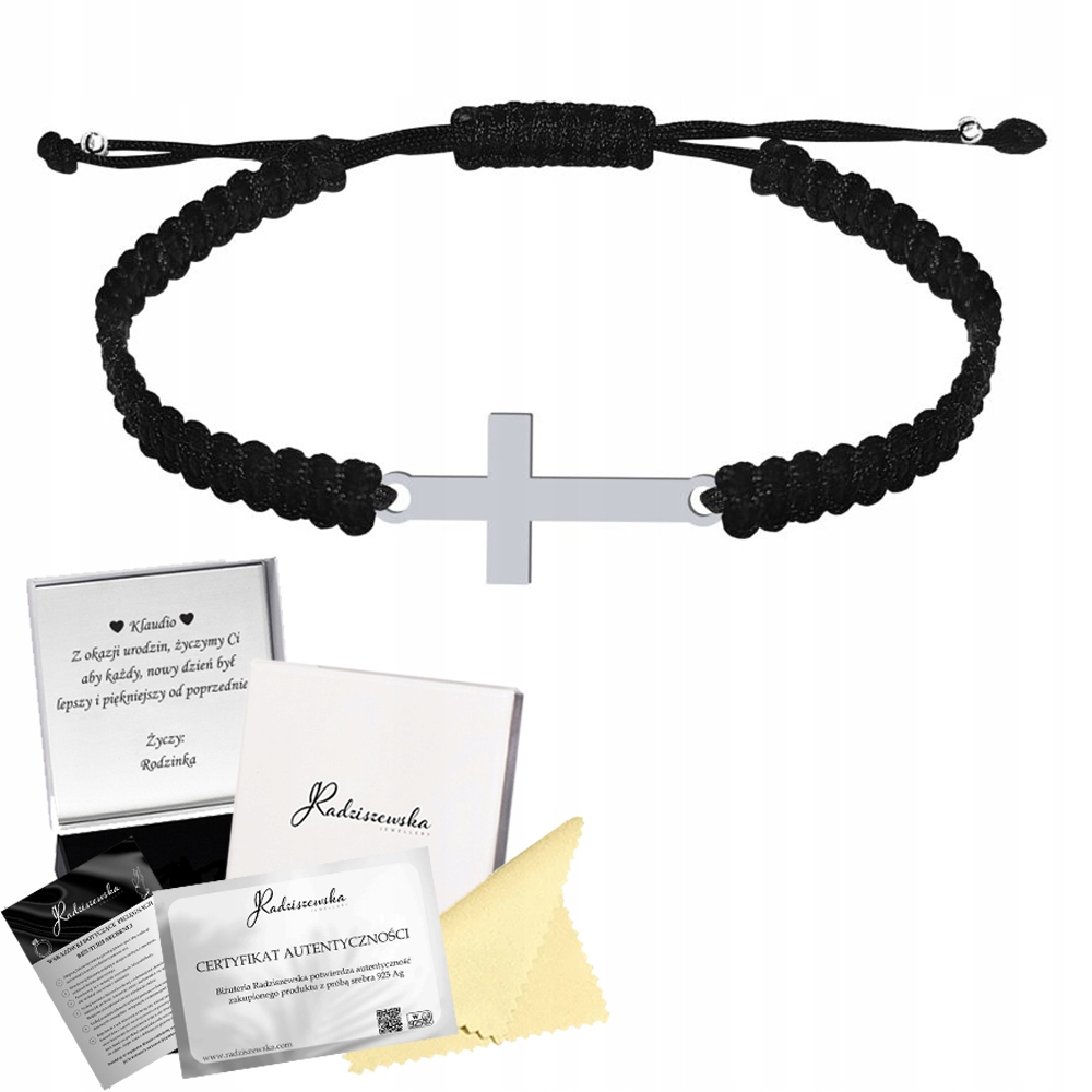 Stříbrný náramek s křížkem Makramé Dárek Šperky 925 GRAVÍROVÁNÍ DÁREK