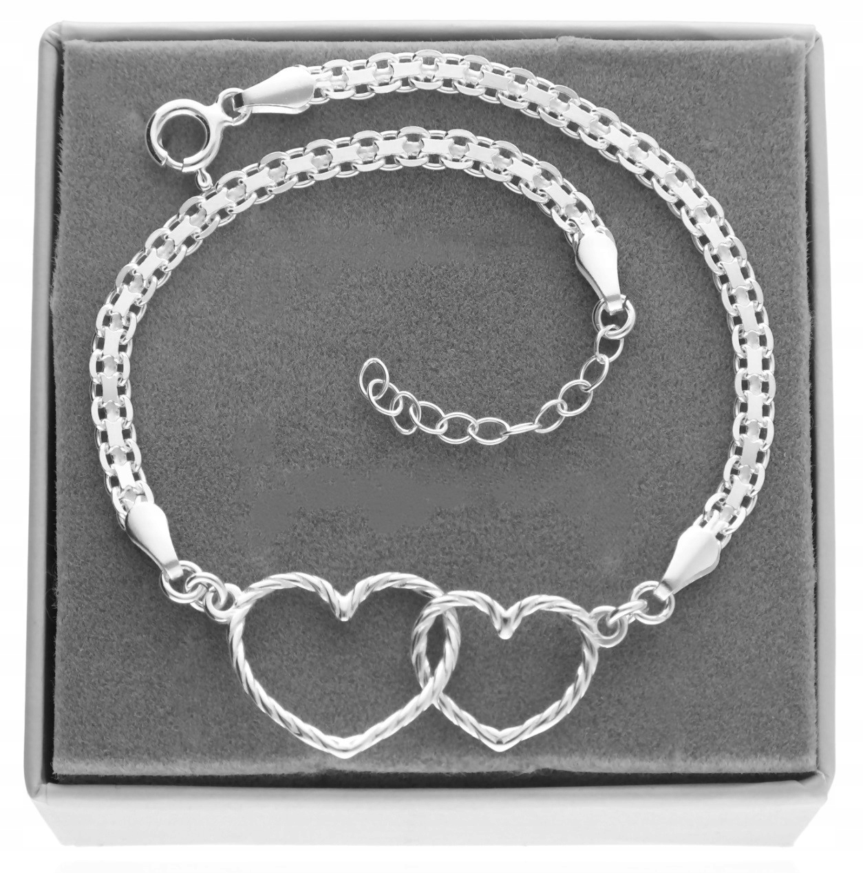 Elegantní široký náramek vyrobený ze stříbra se dvěma srdíčky