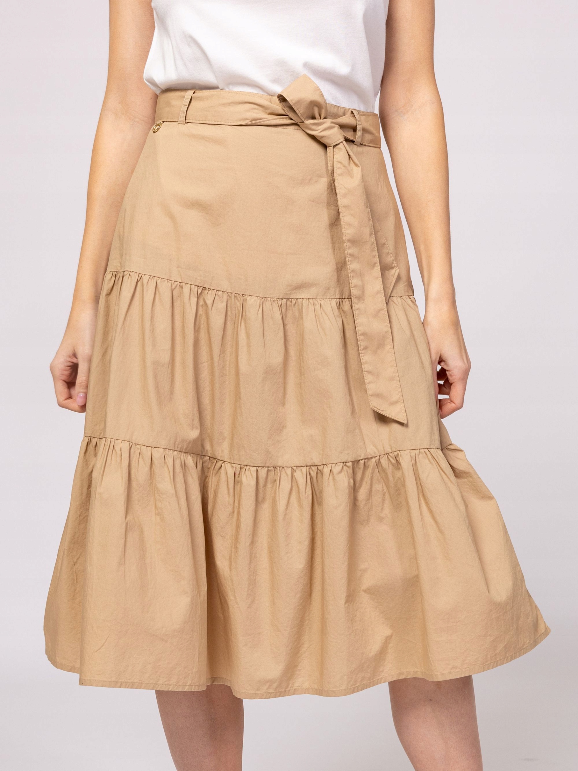 ✅dámská dlouhá sukně s rozšířeným plisovaným střih, zapínání na knoflíky na přední straně, klasické základní barvy, malý metalický branding na přední straně,