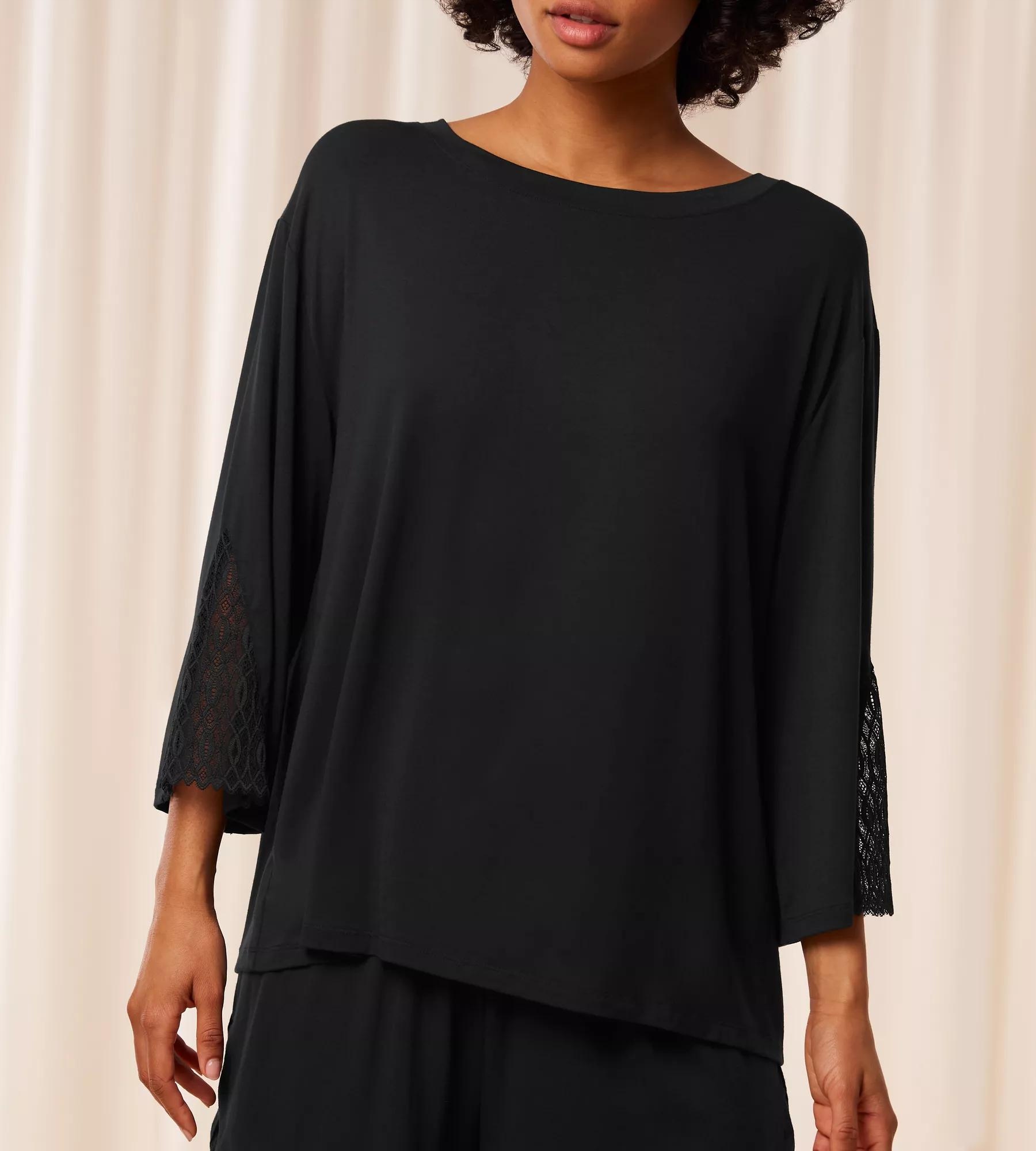 Univerzální top s tříčtvrtečními rukávy, navržený pro neustálé pohodlí po celý rok. Vyrobený téměř výhradně z jemného a elastického materiálu TENCELTM Modal, který dokonale zvýrazňuje siluetu. Subtilní krajkové vložky dodávají jemnou eleganci a vytvářejí ideální kombinaci smyslnosti a pohodlí.