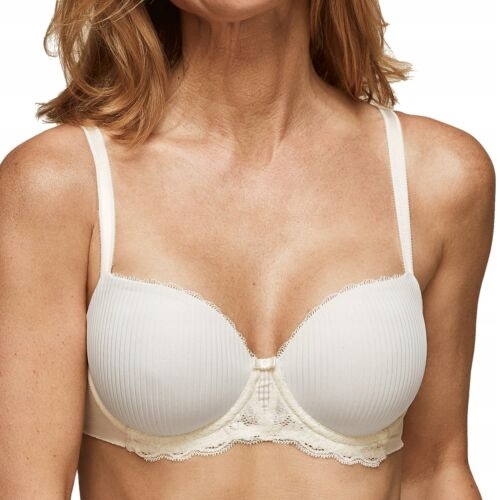 Mezi miskami je umístěna malá saténová mašlička. Boky a zadní část jsou ušité z vysoce kvalitního jerseyu, který zajišťuje optimální oporu. Bezešvé zakončení boční a zadní části činí podprsenku velmi pohodlnou a neomezuje pohyb. Pohodlná, široká ramínka s filigránovým, vroubkovaným lemem zajišťují lepší přizpůsobení postavě.