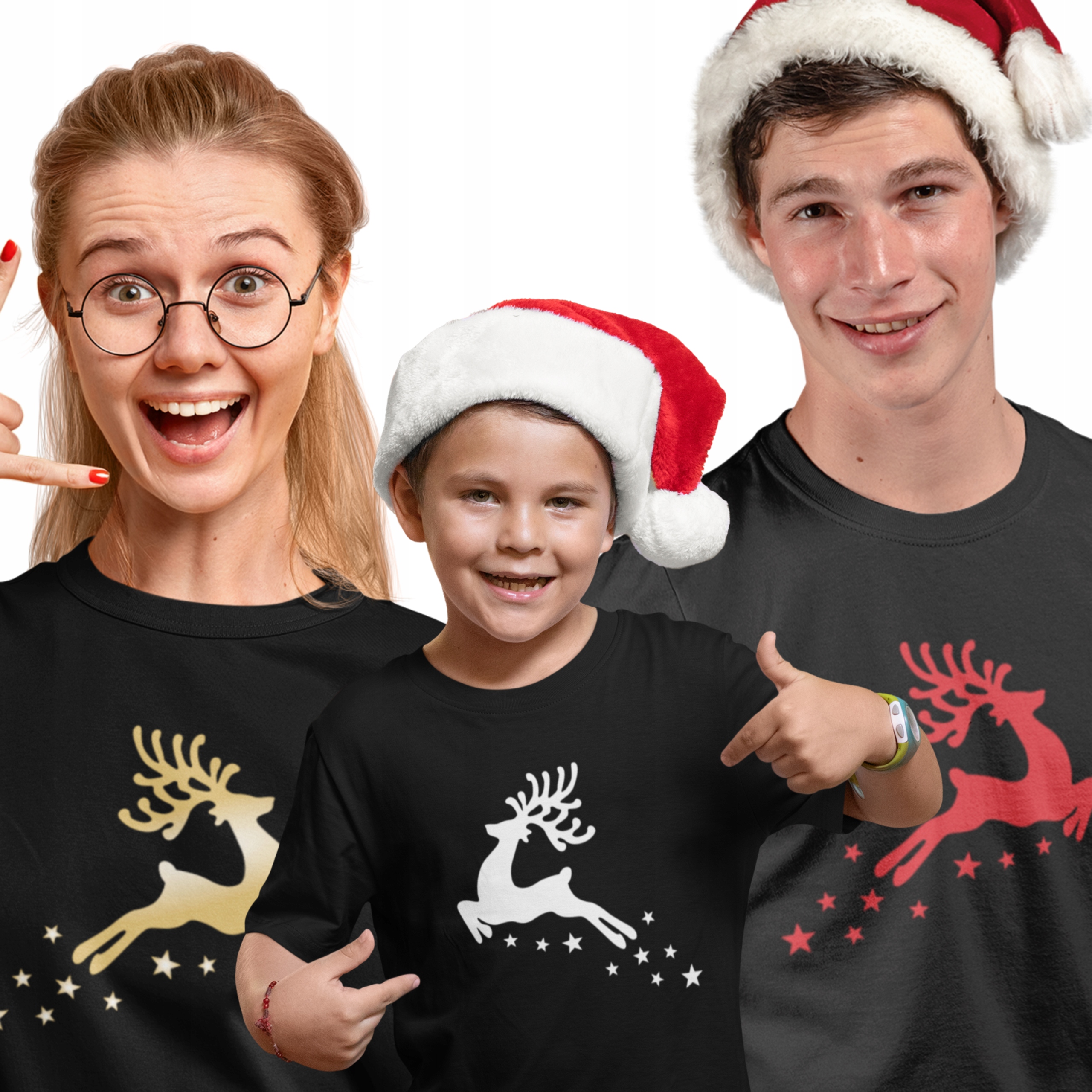 Pohodlné a měkké bavlněné trička s vysoce kvalitním potiskem ve tvaru skákajícího soba a hvězdiček jsou skvělou vánoční nabídkou pro celou rodinu. Každý člen rodiny si může vybrat jak barvu trička, tak potisk a vytvořit tak ucelený, ale jedinečný komplet. Trička se skvěle hodí na štědrovečerní večeři, rodinnou fotografii nebo jako dárek pod stromeček.