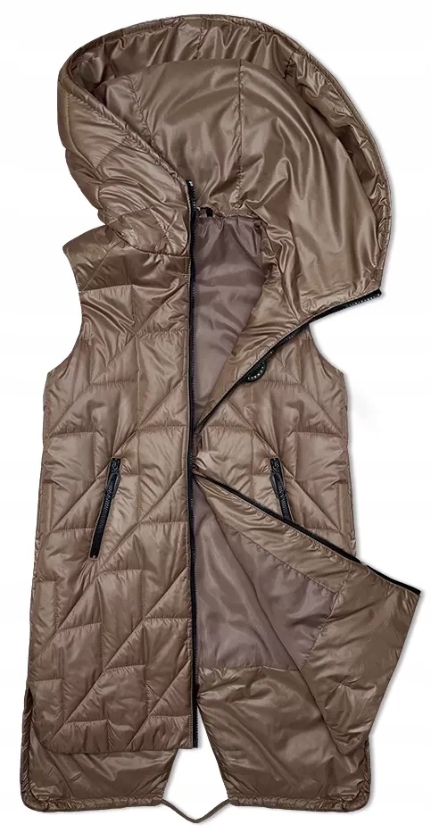Prošívaná dámská vesta s asymetrickým spodním lemem S’West tmavě béžová (B8237-101) – XL (42)