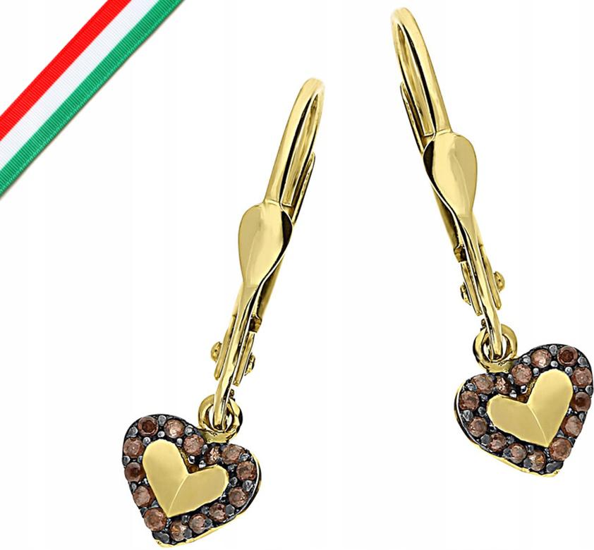 Zlaté náušnice závěsné 585 srdíčka se zirkony