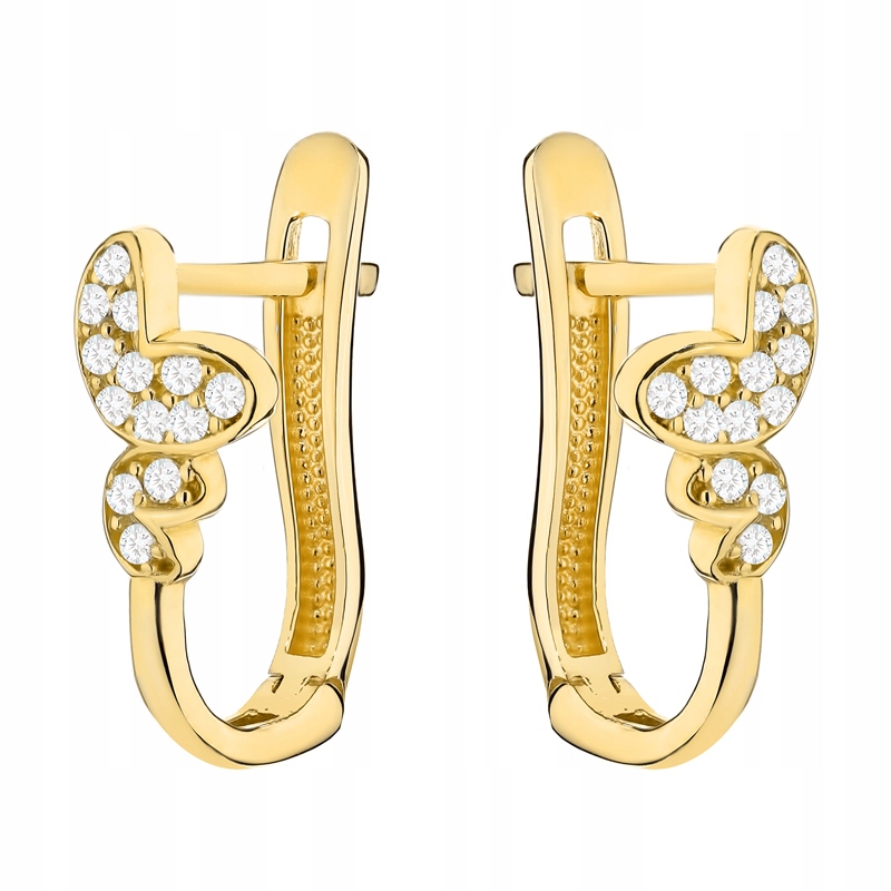 ZLATÉ NÁUŠNICE Dámské, anglické pr. 585 14k Dvě srdce Srdce s zirkony