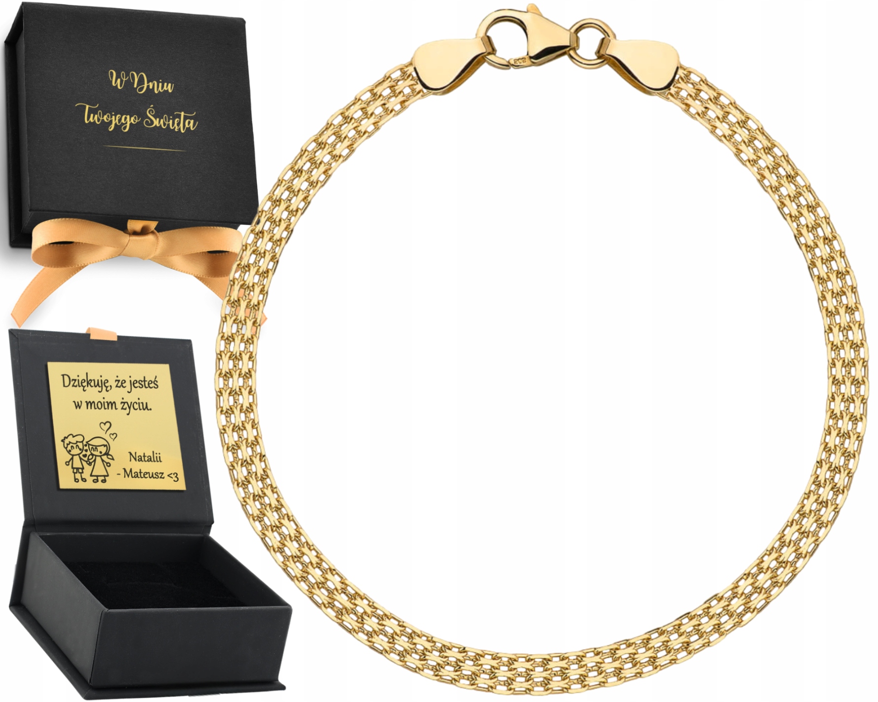 Zlatý náramek Bismarck 5 Mm Dárek S Gravírováním Certifikát 18 cm