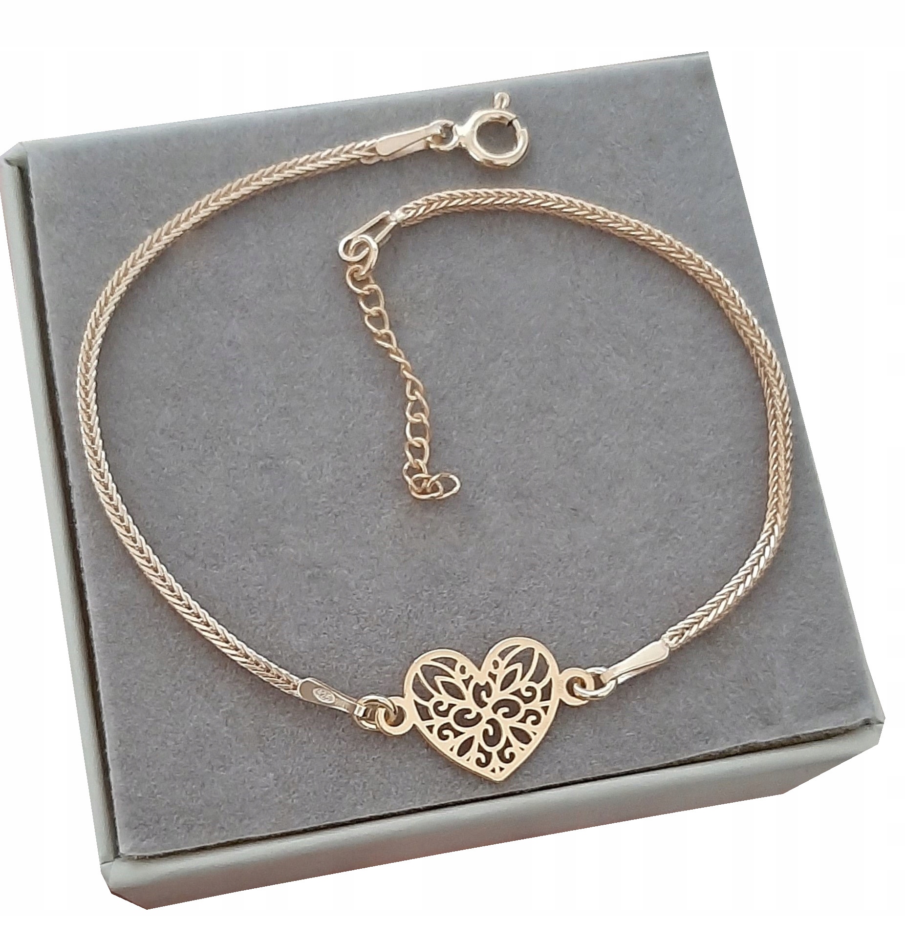 Náramek se srdcem je kompletně vyroben ze stříbra 925 pokrytého zlatem