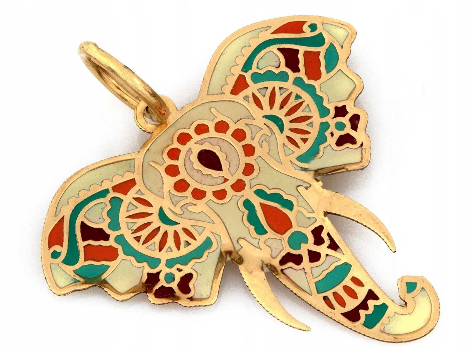 Zlatý přívěsek 585 14k smaltovaná hlava slona 0.58g unikátní jako dárek