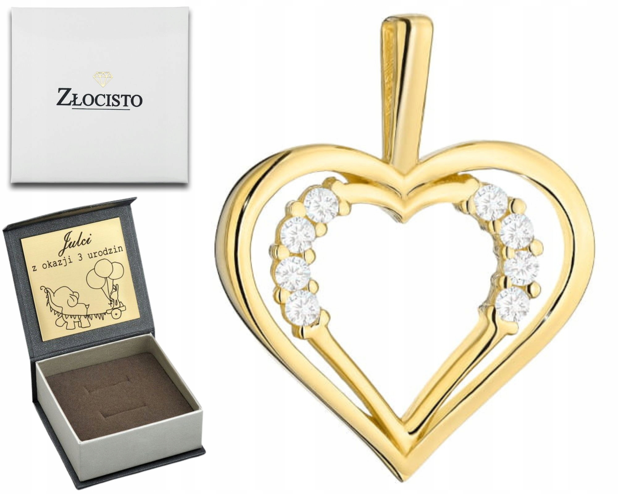 ZLATÝ PŘÍVĚSEK DVĚ SRDCE A ZIRKONY 585 GRAVÍROVÁNÍ