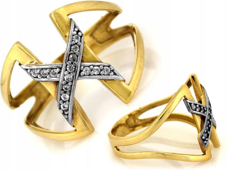 Zlatý prstýnek 585, jedinečný originální tvar s zirkony, r10, módní