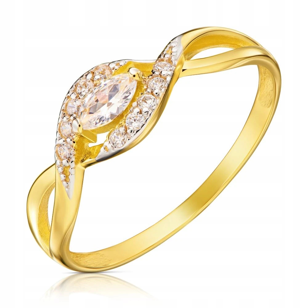 Zlatý prstýnek 585 propletený zirkony 16