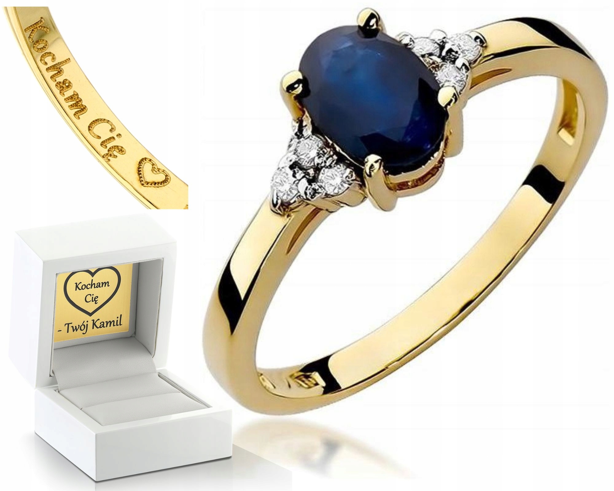 ZLATÝ PRSTÝNEK BRILIANTOVÝ SAFÍR 0,585